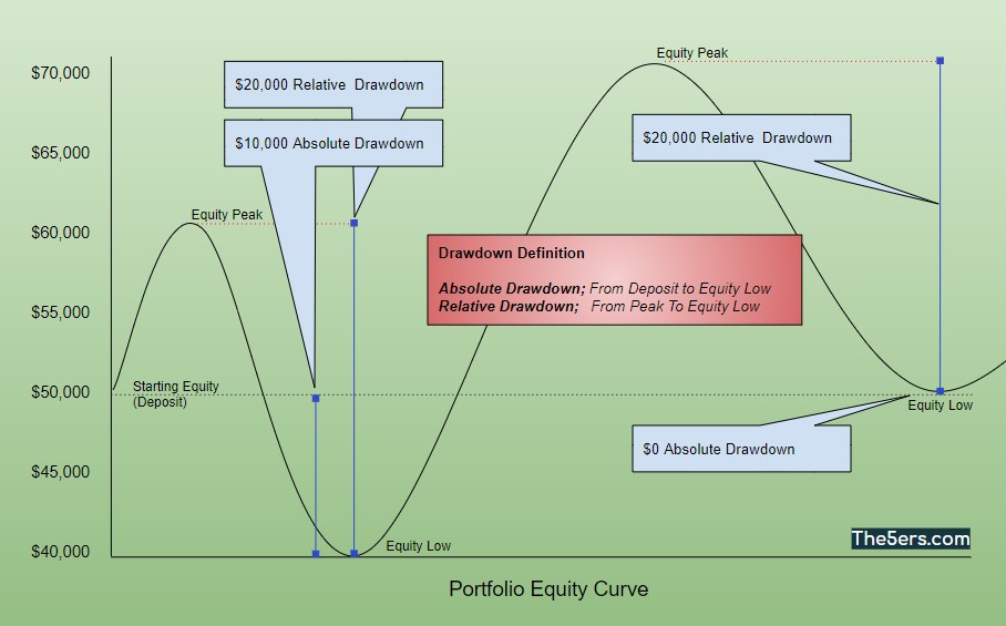 In financial markets, there are 2 types of equations (trading drawdowns) that are usually discussed. There is the absolute drawdown and there is the relative drawdown and each calculation is relevant to a different class of investors.
